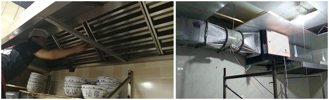 3、安裝凈化器與煙罩出口位置的距離至少3米以上,以確保消防安全和凈化效果;凈化器與風機的距離2米以上比較合適。